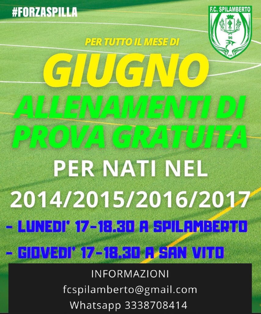 Per informazioni inviare una mail a fcspilamberto@gmail.com oppure messaggio WhatsApp al numero 3338708414.