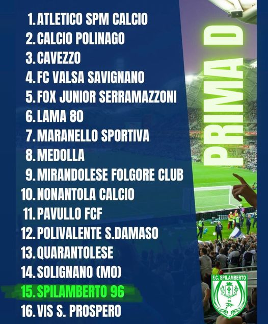 PRIMA CATEGORIA 2024/25, SPILAMBERTO NEL ‘GIRONE D’